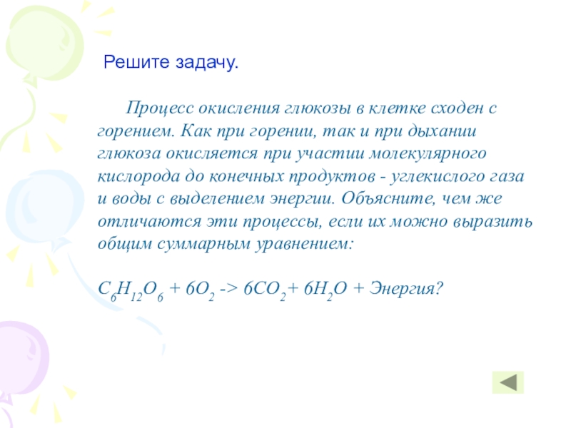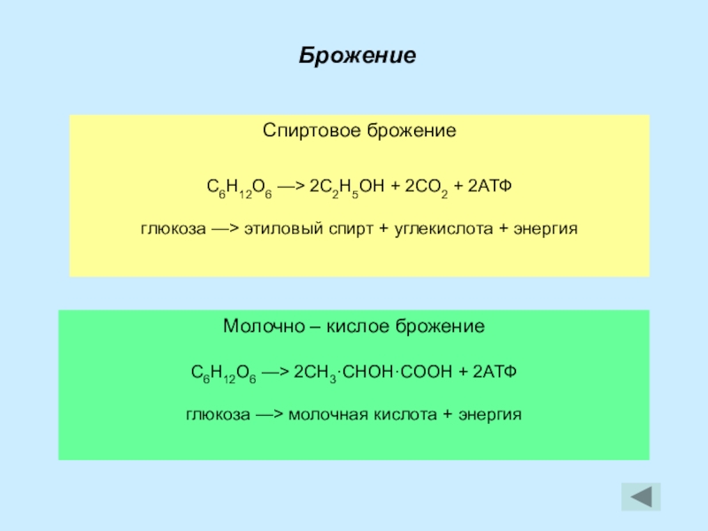 C6H12O6 —> 2CH3·CHOH·COOH + 2АТФ