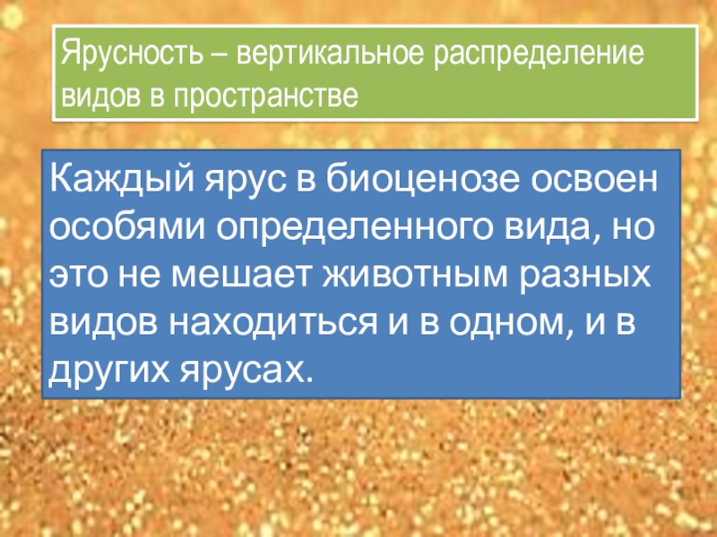 Слайд 4Ярусность – вертикальное распределение видов в пространстве