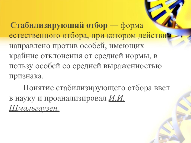 Слайд 6 Стабилизирующий отбор — форма естественного отбора, при котором действие направлено