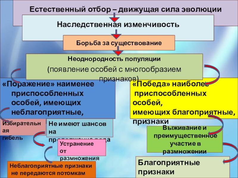 «Поражение» наименее приспособленных особей, имеющих неблагоприятные, признаки