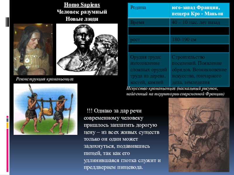 !!! Однако за дар речи современному человеку пришлось заплатить дорогую цену – из всех живых существ только он один может задохнуться, подавившись пищей, так как его удлинившаяся глотка служит и преддверием пищевода.