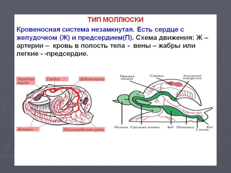 Какой тип представлен на слайде?Сосуды открываются в полость тела