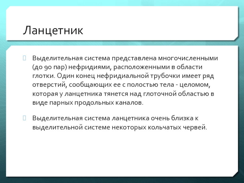 Выделительная система ланцетника очень близка к выделительной системе некоторых кольчатых червей.