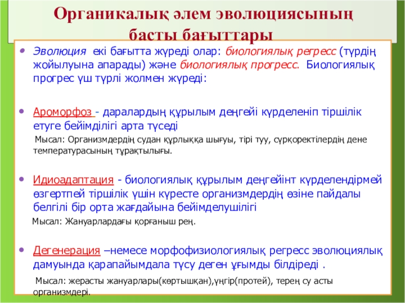 Органикалық әлем эволюциясының басты бағыттары