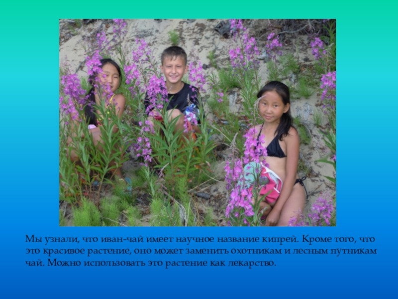 Слайд 11Мы узнали, что иван-чай имеет научное название кипрей. Кроме того, что