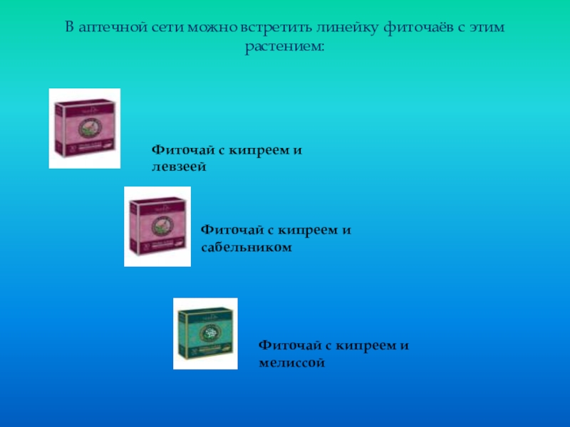 Слайд 12В аптечной сети можно встретить линейку фиточаёв с этим растением: