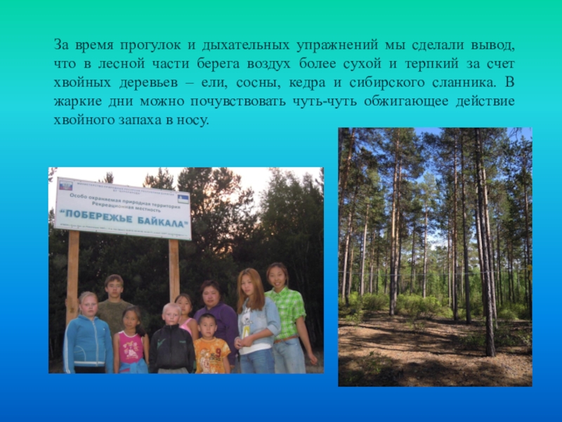 Слайд 9За время прогулок и дыхательных упражнений мы сделали вывод, что в