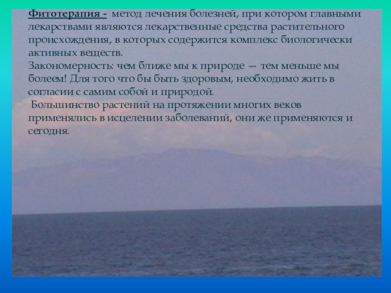Слайд 6Фитотерапия - метод лечения болезней, при котором главными лекарствами являются лекарственные