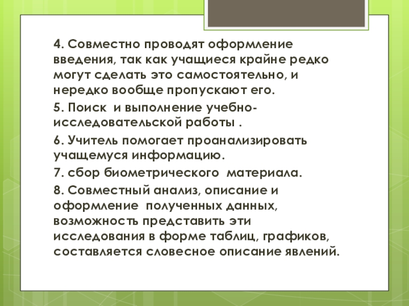 4. Совместно проводят оформление введения, так как учащиеся крайне редко могут сделать это самостоятельно, и нередко вообще