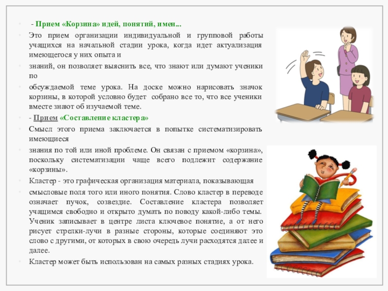 знания по той или иной проблеме. Он связан с приемом «корзина», поскольку систематизации чаще всего подлежит содержание «корзины».