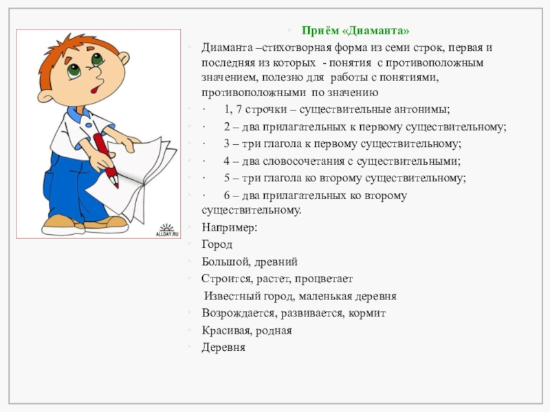 Диаманта –стихотворная форма из семи строк, первая и последняя из