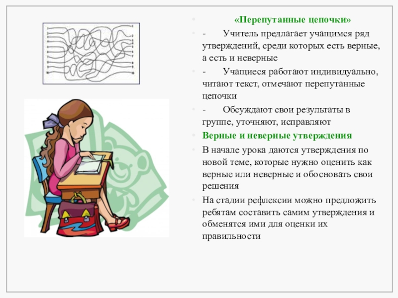 - Учащиеся работают индивидуально, читают текст, отмечают перепутанные цепочки