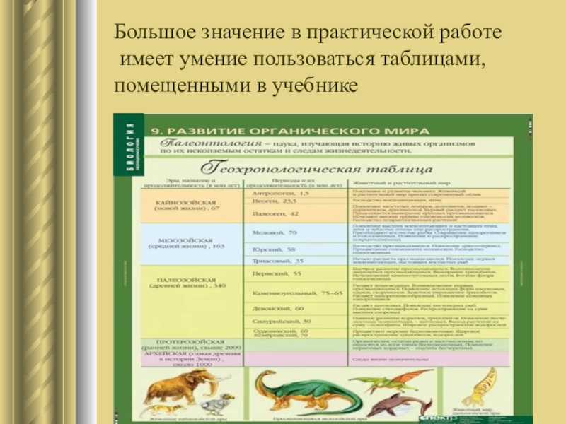 Слайд 7Большое значение в практической работе имеет умение пользоваться таблицами, помещенными в