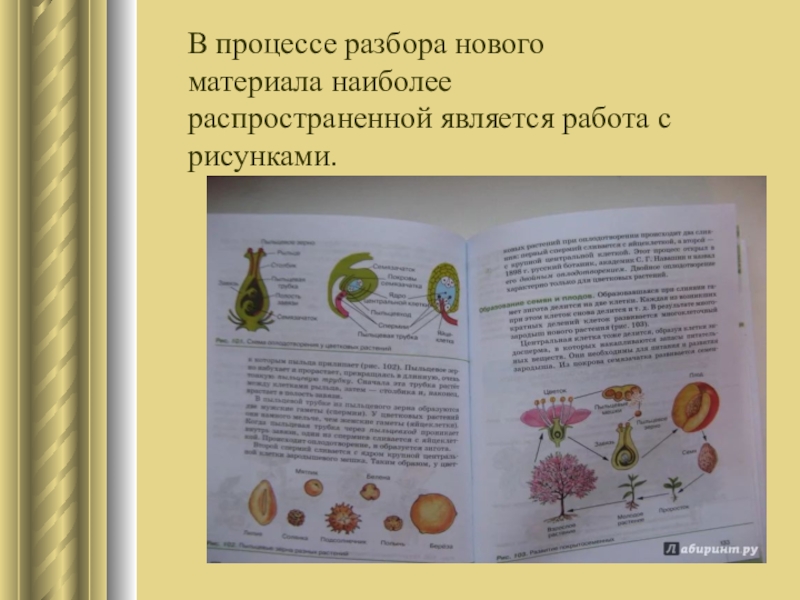 Слайд 9В процессе разбора нового материала наиболее распространенной является работа с рисунками.