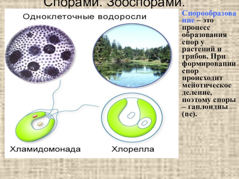 При формировании спор происходит мейотическое деление, поэтому споры – гаплоидны (nс).