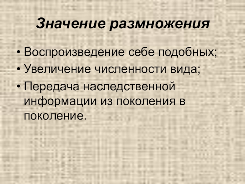 Слайд 4Размножение – это процесс воспроизведения себе подобных