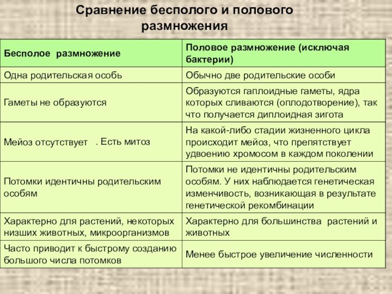 При бесполом размножении потомство генетически сильно отличается от родительских организмов.