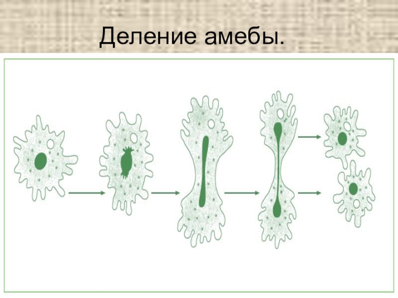 Это деление, при котором образуются две равноценные дочерние клетки (амеба,