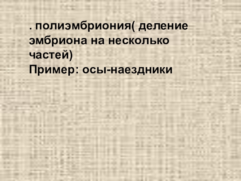 Слайд 93. полиэмбриония( деление эмбриона на несколько частей)Пример: осы-наездники