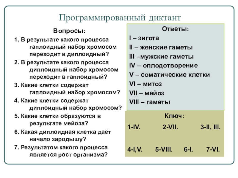 VIII – гаметы