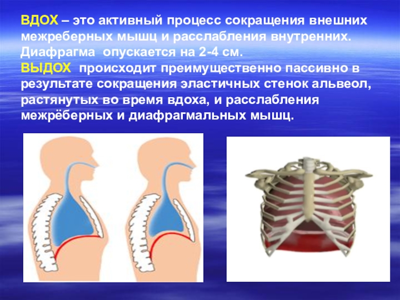 ВДОХ – это активный процесс сокращения внешних межреберных мышц и расслабления