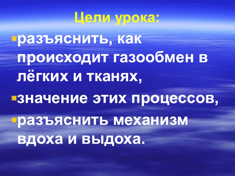 разъяснить, как происходит газообмен в лёгких и тканях,