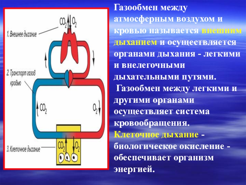 Слайд 12Газообмен между атмосферным воздухом и кровью называется внешним дыханием и осуществляется