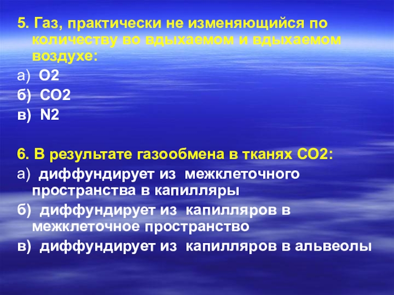 5. Газ, практически не изменяющийся по количеству во вдыхаемом и вдыхаемом