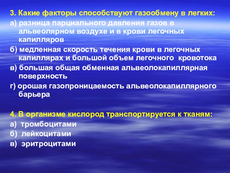 б) медленная скорость течения крови в легочных капиллярах и большой объем легочного кровотока