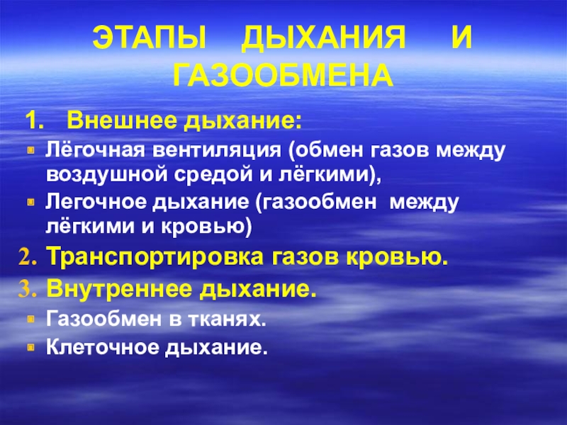 Слайд 11ЭТАПЫ ДЫХАНИЯ И ГАЗООБМЕНА