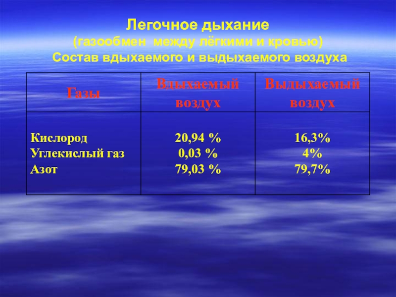 Легочное дыхание (газообмен между лёгкими и кровью)