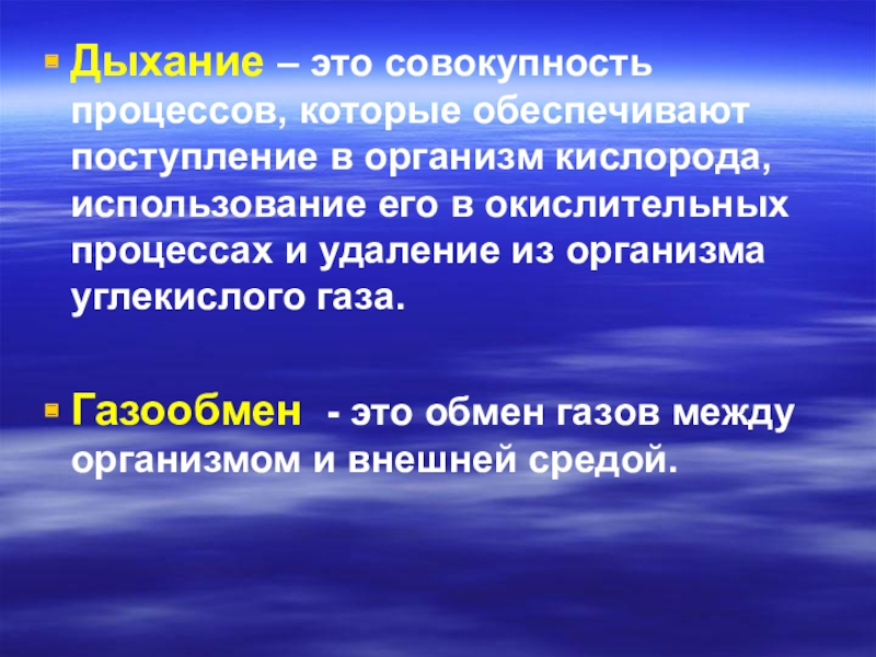 Дыхание – это совокупность процессов, которые обеспечивают поступление в организм кислорода,