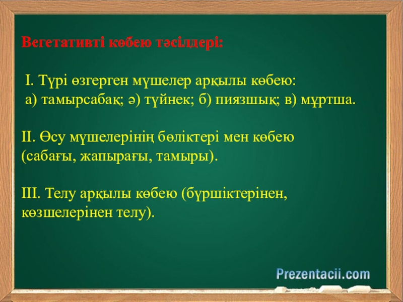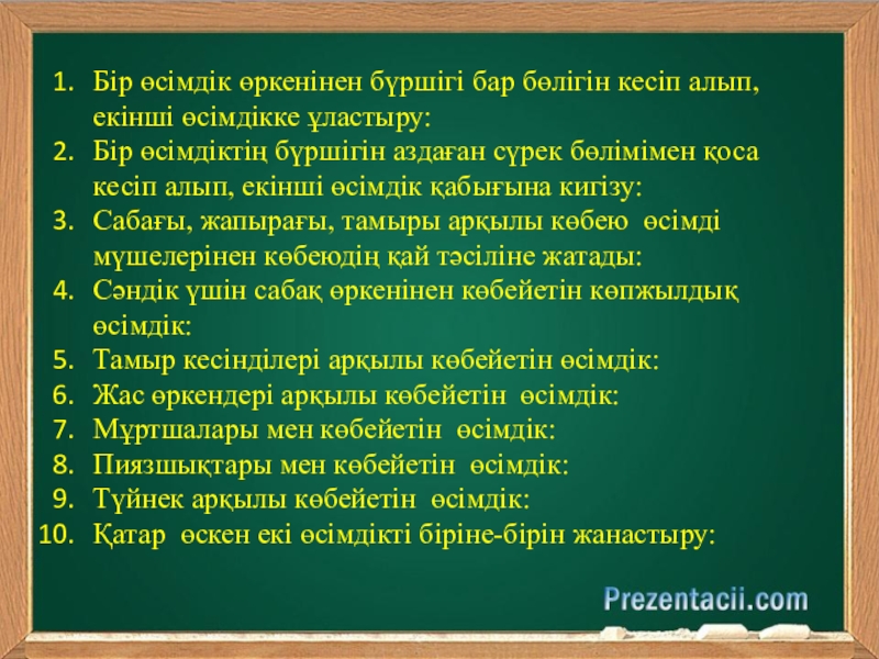 Өсімдіктердің вегетативті мүшелері арқылы көбею жолдары.