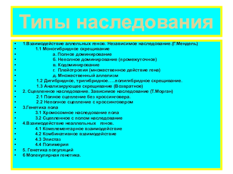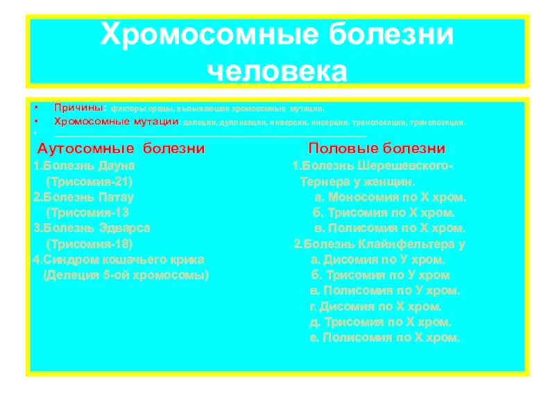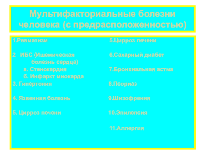 6. Мукополисахаридоз 11.Альбинизм (глазо-кожный)