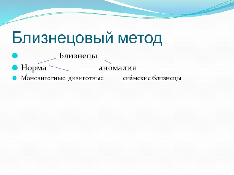 Близнецовый методСостоит в изучении развития признаков у близнецов , позволяет выявить в какой мере фенотипическое проявление признака