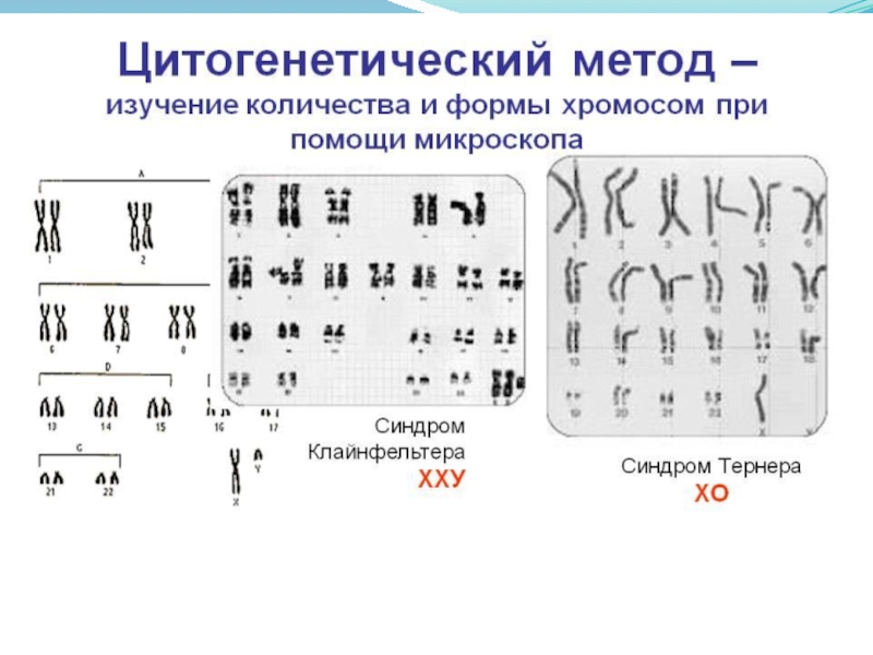 Заключается в микроскопическом исследовании хромосомного набора , позволяет диагностировать на