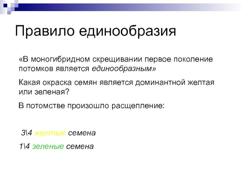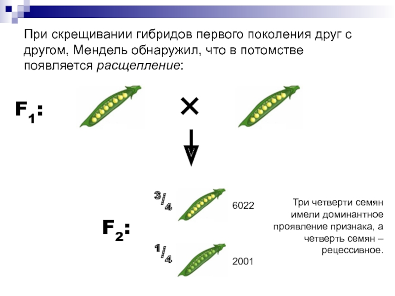 Три четверти семян имели доминантное проявление признака, а четверть семян – рецессивное.