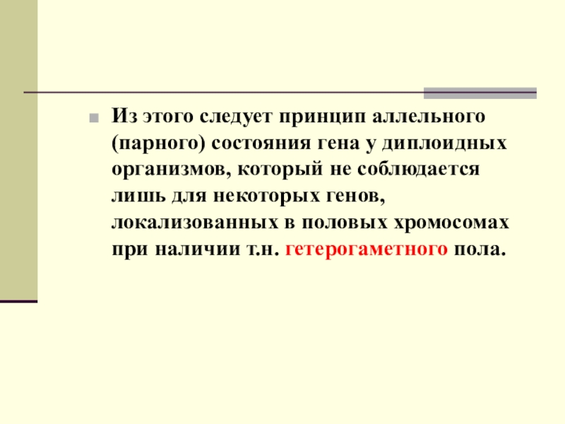 Слайд 9Из этого следует принцип аллельного (парного) состояния гена у диплоидных организмов,