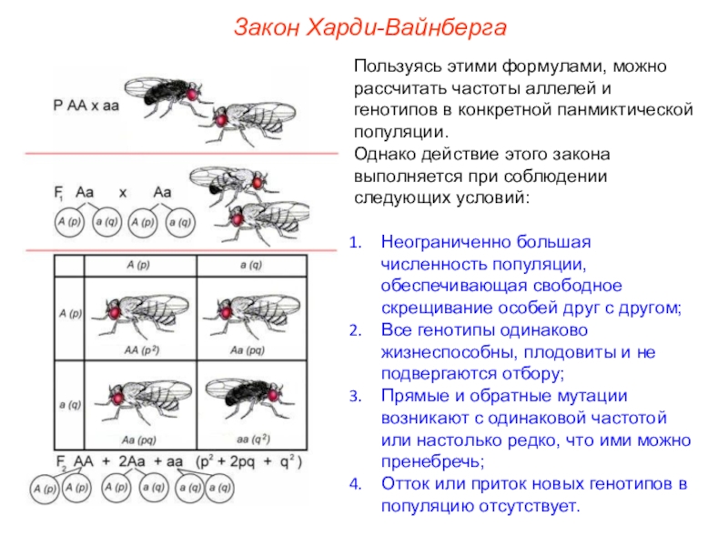 Все генотипы одинаково жизнеспособны, плодовиты и не подвергаются отбору;