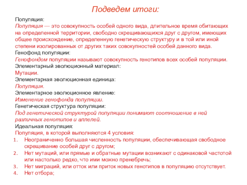 Неограниченно большая численность популяции, обеспечивающая свободное скрещивание особей друг с другом;