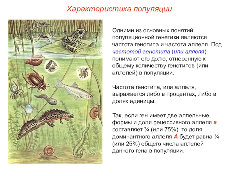 Слайд 6Одними из основных понятий популяционной генетики являются частота генотипа и частота