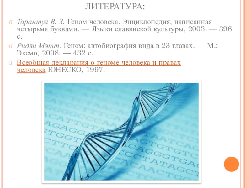 Ридли Мэтт. Геном: автобиография вида в 23 главах. — М.: Эксмо, 2008. — 432 с.