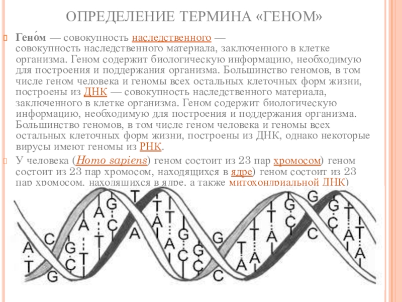 Слайд 2ОПРЕДЕЛЕНИЕ ТЕРМИНА «ГЕНОМ»