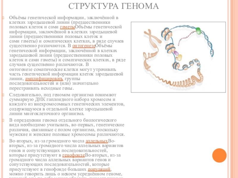 клеток и сами гаметыОбъёмы генетической информации, заключённой в клетках зародышевой линии (предшественники половых клеток и сами гаметы) и соматических клетках, в ряде случаев существенно различаются. В онтогенезеОбъёмы генетической информации, заключённой в клетках зародышевой линии (предшественники половых клеток и сами гаметы) и соматических клетках, в ряде случаев существенно различаются. В онтогенезе соматические клетки могут утрачивать часть генетической информации клеток зародышевой линии, амплифицировать группы последовательностей и (или) значительно перестраивать исходные гены.