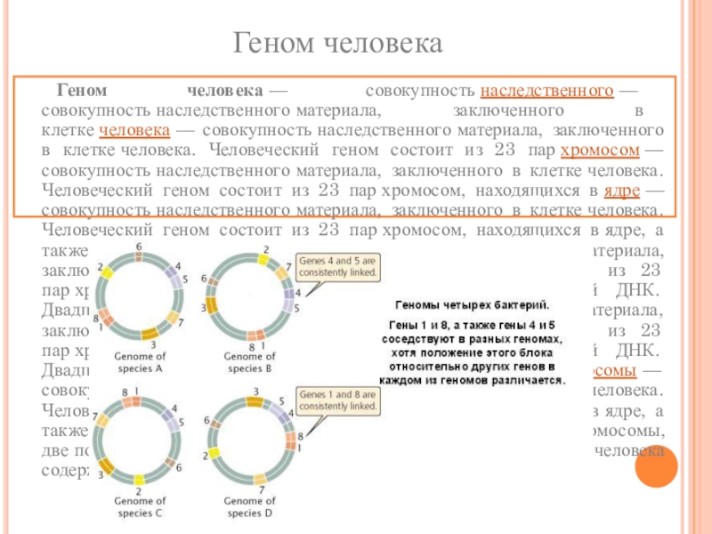 Геном человека — совокупность наследственного — совокупность наследственного материала, заключенного в клетке человека — совокупность наследственного материала, заключенного в