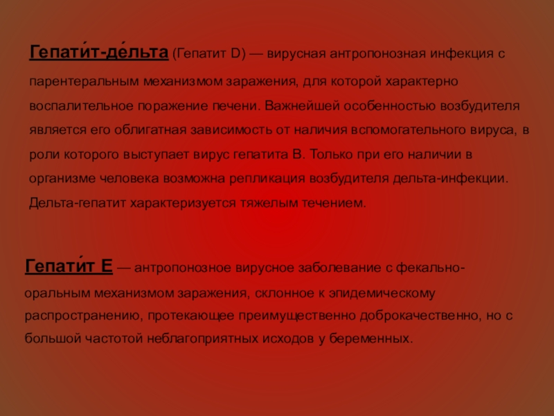 Гепати́т E — антропонозное вирусное заболевание с фекально-оральным механизмом заражения, склонное к эпидемическому распространению, протекающее преимущественно доброкачественно, но с большой частотой неблагоприятных исходов у беременных.