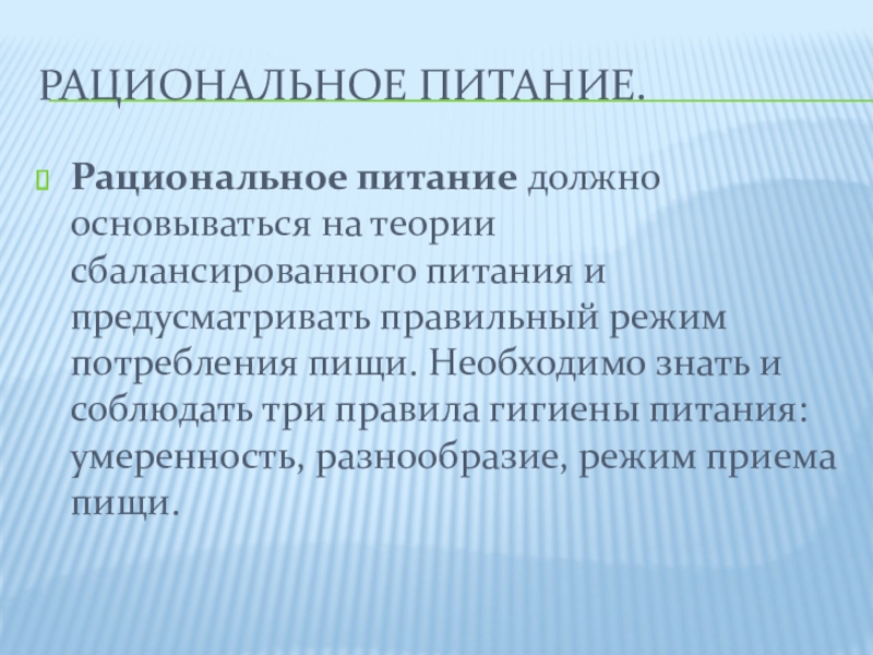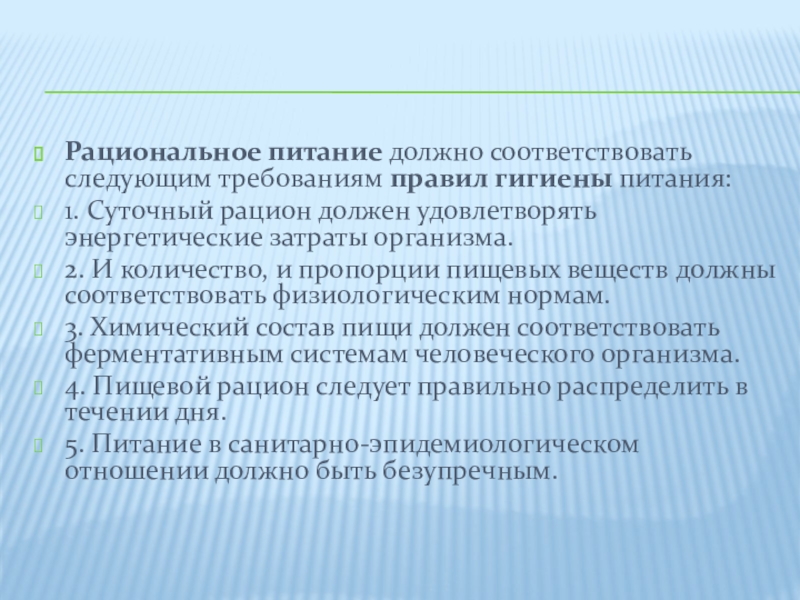 Слайд 4Рациональное питание должно соответствовать следующим требованиям правил гигиены питания: