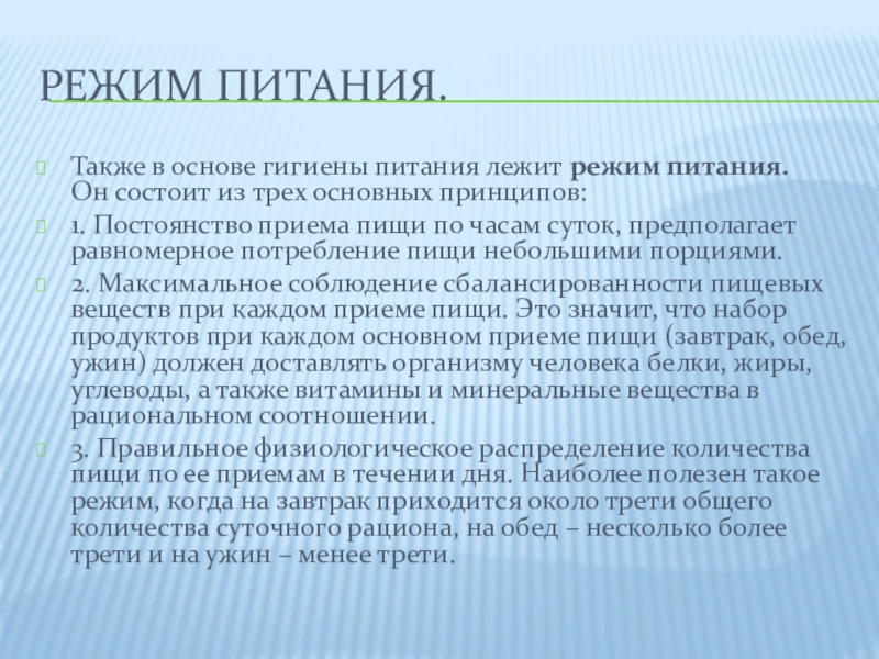 Также в основе гигиены питания лежит режим питания. Он состоит из трех