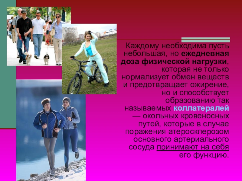 Слайд 10Каждому необходима пусть небольшая, но ежедневная доза физической нагрузки, которая не