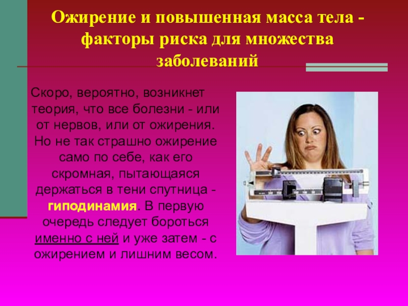 Слайд 7Ожирение и повышенная масса тела - факторы риска для множества заболеваний